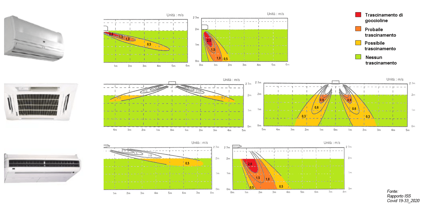 Ne consegue che utilizzare gli impianti di climatizzazione a basso regime è molto più sicuro, soprattutto in presenza di lavoratori abituali, al fine di evitare il trascinamento di eventuali goccioline. Gli uffici che vedono la presenza di più persone contemporaneamente sono quelli più esposti, in linea teorica, a questo tipo di rischi.