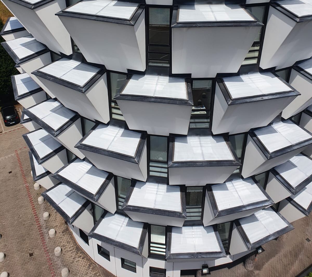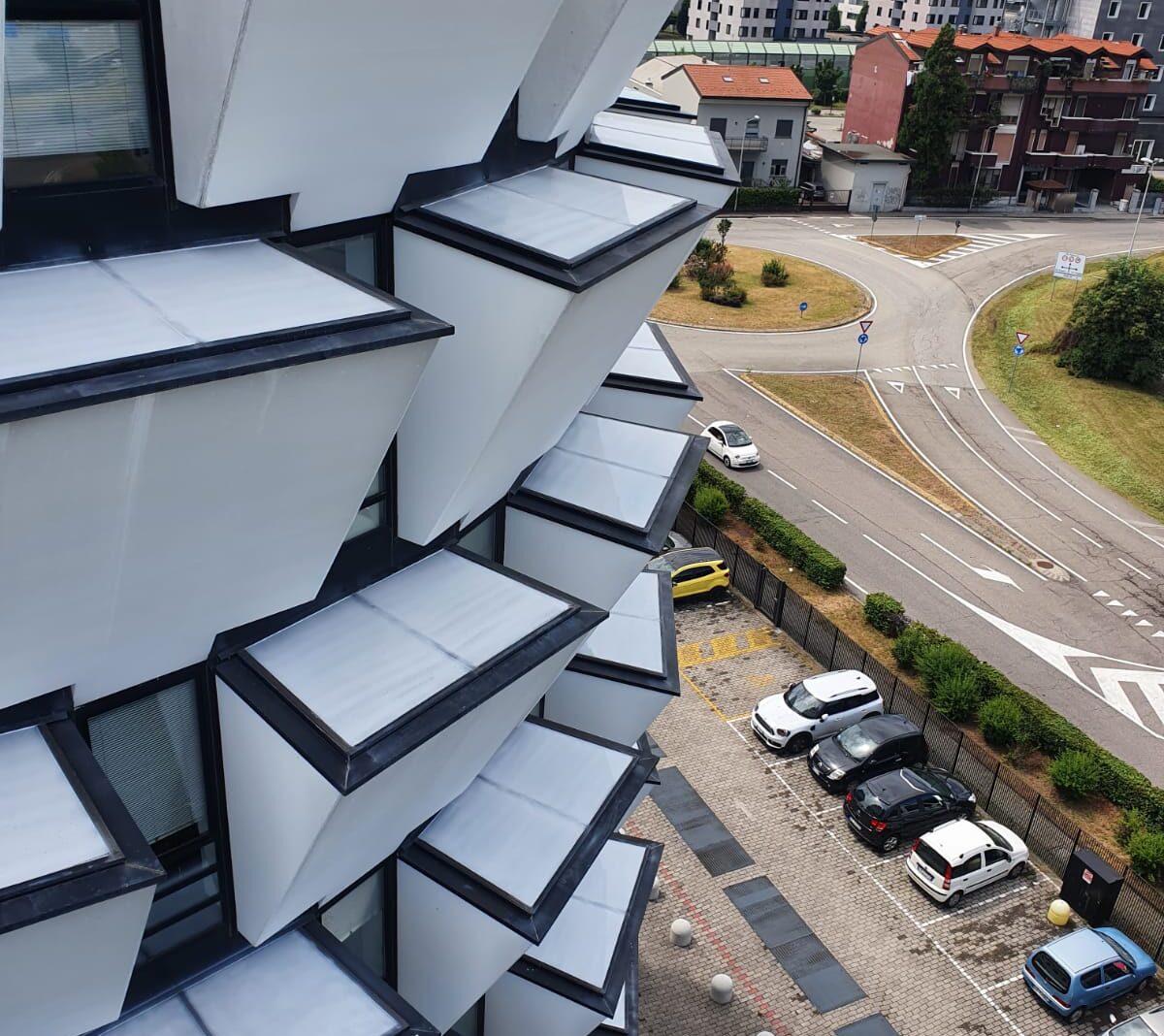 Le famose torri Ananas con i particolari Bow Window progettati dall’ Arch. Riccardo Blumer simbolo di Cinisello Balsamo sono state trattate, dopo vari esperimenti con materiali diversi nel corso degli anni, con la nostra Vernice per Vetro. Applicando la vernice sulle superfici piane si è ridotto del 71,8% il calore passante oltre a modulare la luce passante.